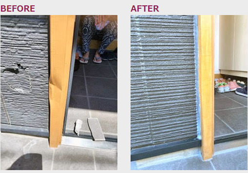 ご自宅玄関先での自損事故についてご相談を頂き元請工務店様とともに短期間で復旧させて頂きました。年数を経ており、同様のドア枠など全てを交換することと比べて時間的、経済的な損失を大幅に減らすことができました。