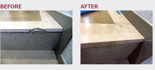 築30年以上の大邸宅リフォーム工事中に、何らかの理由で天然大理石製階段踏面の欠落が発生!現場に急行し数時間の作業で欠落部分は全く分からなくすることが出来ました。現時点では同様の材料を手に入れることは困難。時間の経過を新品では、醸し出すことは出来ません。芸術的な補修により従前と変わらない環境を蘇らせることが 可能です。