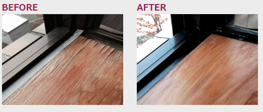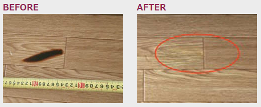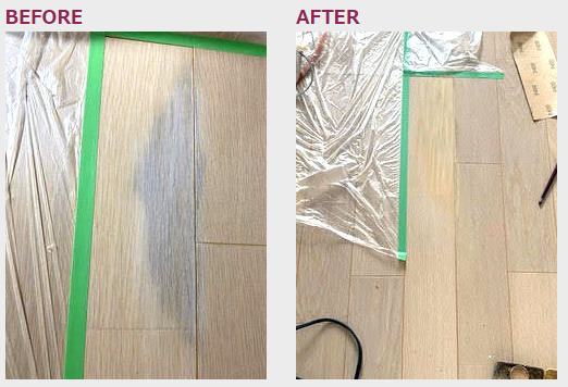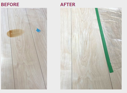 長年に亘り観葉植物を置いていた床、周辺に水が染み込んだ状態でした。