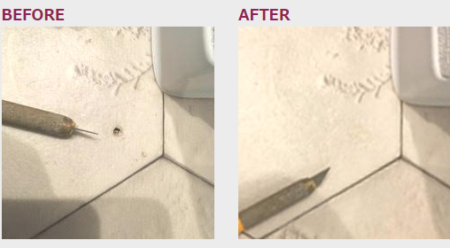 ビル外壁の全体メンテの会社からのご依頼によりひび割れの補修を実施。同様のタイルは現在なく、ビル所有者様の入り口部分で相談を頂きました。経年の雰囲気を残しつつ、見苦しいひび割れを補修。所有者様よりも絶賛頂きました。入り口以外のひび割れも合わせて施工いたしました。