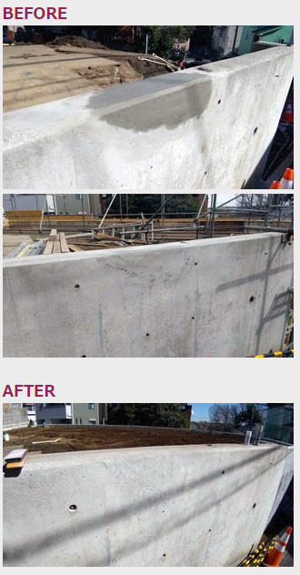 宅地造成中にコンクリート擁壁が重機によって破壊されセメントで埋めるも現場部分との差が出てしまい見苦しいとのご相談。コンクリート面の調整をして無事に引き渡しが終わりました。