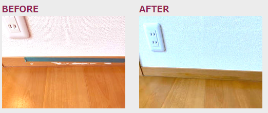 寸法を間違えて切断、はめ込んだものの境界までぴたりと合わせることは不可能。小職にていったん応急措置の上(管理会社の眼に入ると大変!)最終お引き渡し時には、全く分からない修復を実現。一同、ほっと胸をなでおろしました。(秘密の話ですが・・・)