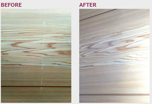 和室の柾目天井に内装業者がつけてしまった養生テープの跡の回復